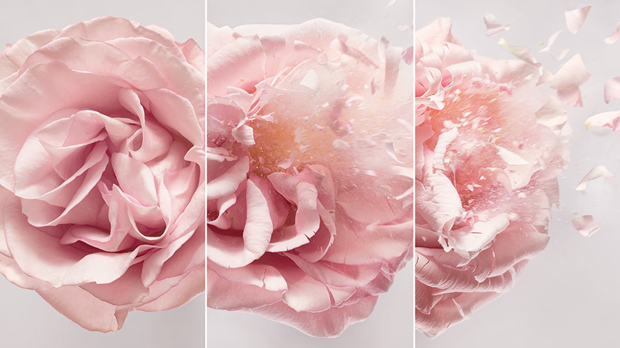 Новая, позаимствованная в акварельной живописи техника лессировки позволила выполнить изысканное расплывчатое окрашивание с невероятно тонкими цветовыми нюансами. Из предварительно растянутых и тщательно увлажненных полотен были вырезаны цветочные узоры. Затем каждый цветок был раскрашен в трех определенных зонах – в центре, а также по левому или правому контуру – точно так же как и 5000 лепестков подиумного платья Miss Dior.